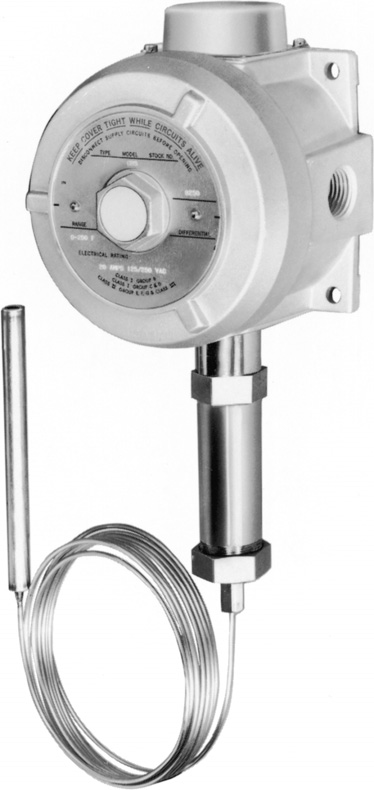 ThermostatsBoth ambient and line sensing thermostats are available for dependable, accurate heater control. Explosion-proof and weatherproof units, housed in lightweight, die-cast enclosures with calibrated dial and external knob can be used in Class 3 hazardous locations, as well as certain groups in Class 1 and Class 2. For less hazardous areas both ambient and line sensing thermostats are available housed in standard watertight, dust tight, tamper-proof, corrosion-resistant, die-cast enclosures. |